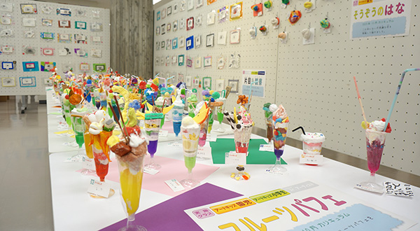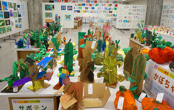 第3展示室での展示となりました。広い会場に元気いっぱいの作品がたくさん並びました。