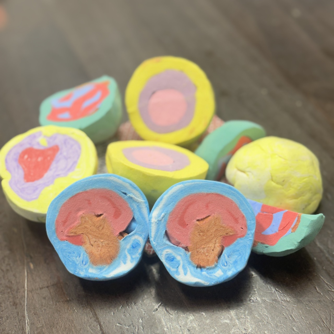 アート団子 カラフルな紙粘土を使って断面の模様を楽しむ作品を作ります |